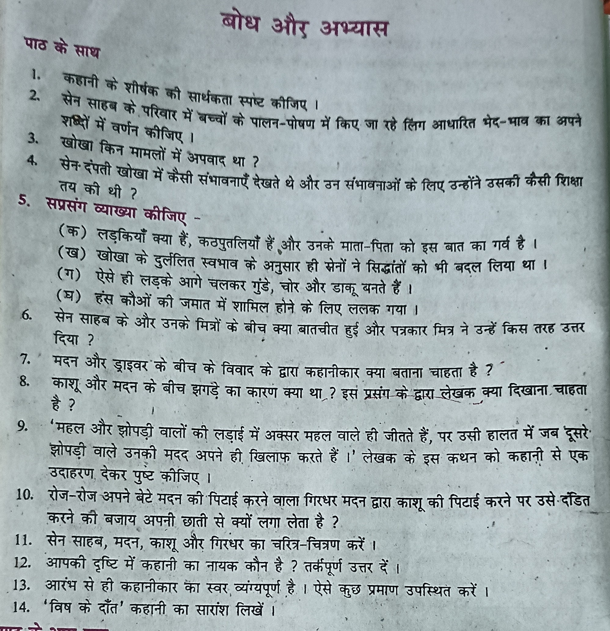 ‘ विष के दाँत ‘ पाठ का प्रश्नोत्तर लिखे।